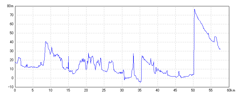 | 水平距離 | 57.08km | 沿面距離 | 57.43km |