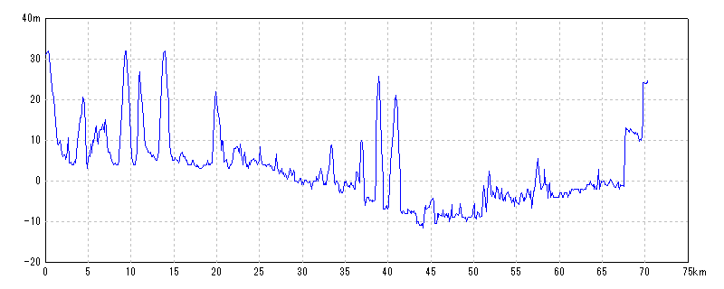 | 水平距離 | 69.80km | 沿面距離 | 69.97km |