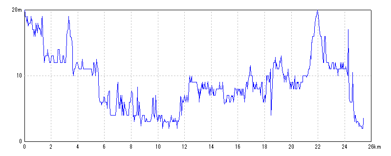 | 水平距離 | 24.92km | 沿面距離 | 25.01km |