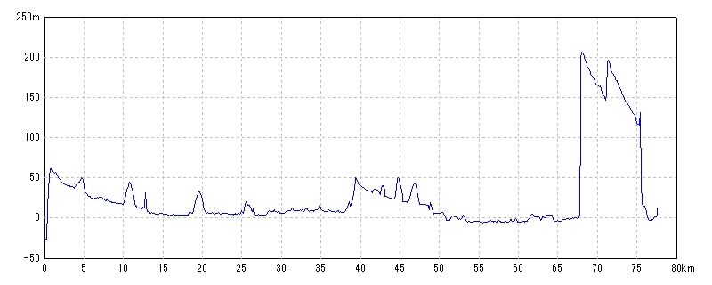 | 水平距離 | 76.68km | 沿面距離 | 77.05km |