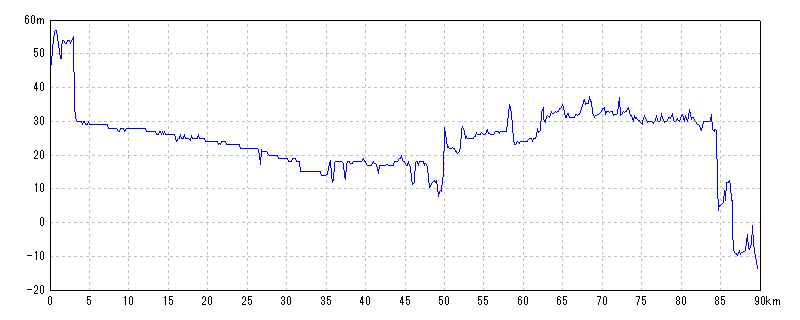 | 水平距離 | 88.72km | 沿面距離 | 88.79km |