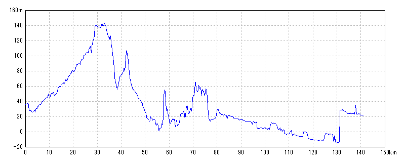 | 水平距離 | 140.35km | 沿面距離 | 140.41km |