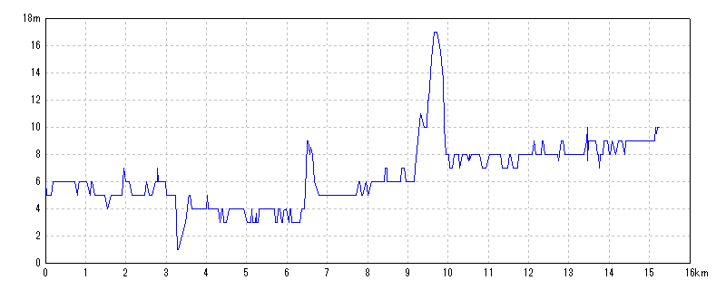 | 水平距離 | 15.15km | 沿面距離 | 15.16km |