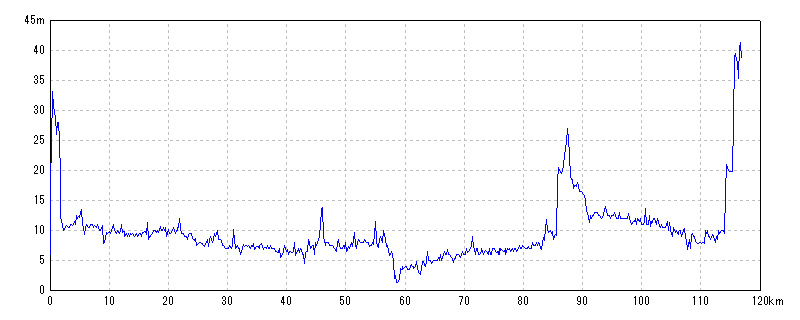 | 水平距離 | 115.93km | 沿面距離 | 116.08km |