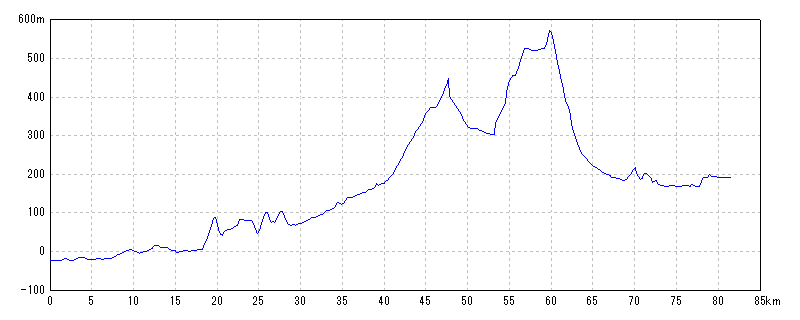 | 水平距離 | 81.54km | 沿面距離 | 81.90km |