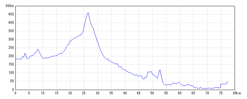 | 水平距離 | 77.37km | 沿面距離 | 77.46km |