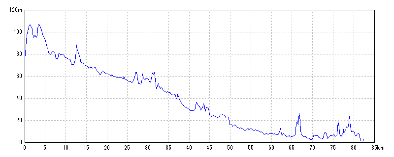 | 水平距離 | 82.44km | 沿面距離 | 82.50km |