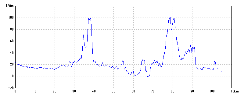| 水平距離 | 104.61km | 沿面距離 | 104.73km |