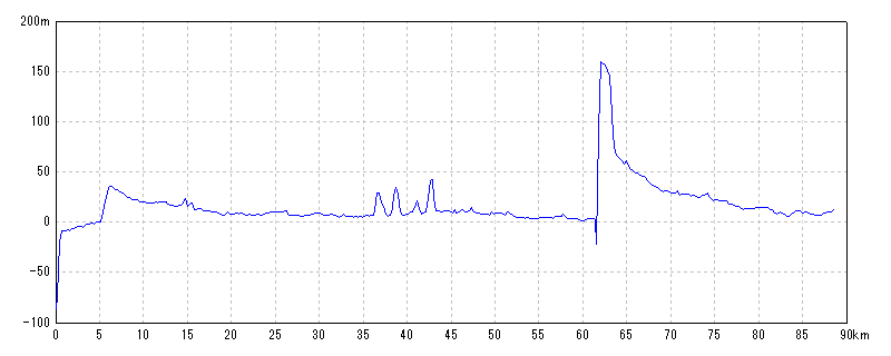 | 水平距離 | 88.55km | 沿面距離 | 88.80km |