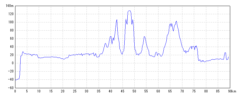 | 水平距離 | 89.44km | 沿面距離 | 89.57km |