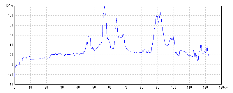 | 水平距離 | 122.31km | 沿面距離 | 122.58km |