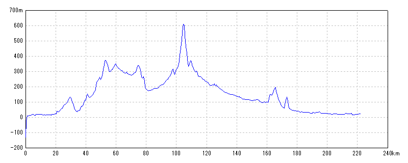 | 水平距離 | 222.32km | 沿面距離 | 222.83km |