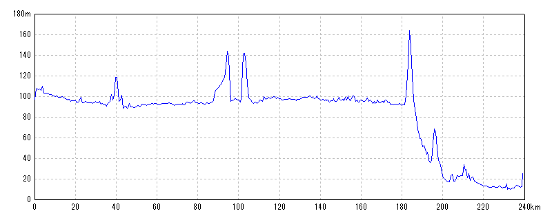 | 水平距離 | 239.26km | 沿面距離 | 239.35km |