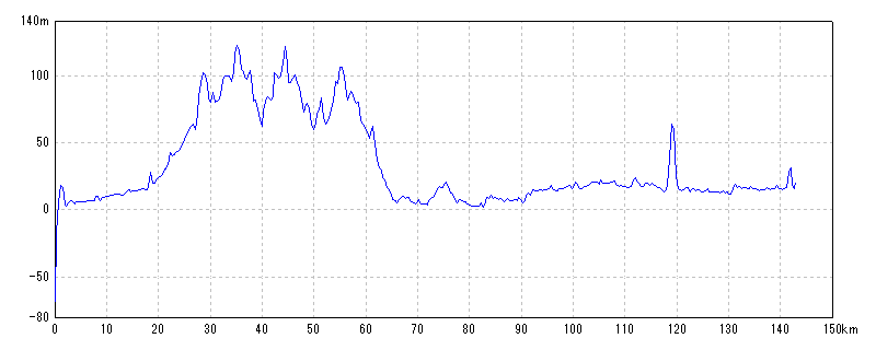| 水平距離 | 142.88km | 沿面距離 | 143.61km |