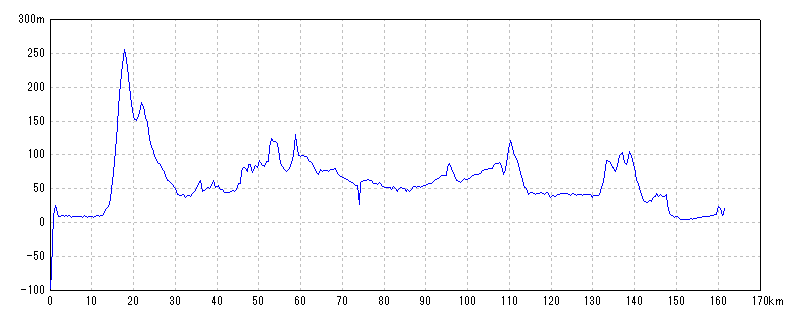 | 水平距離 | 161.46km | 沿面距離 | 161.87km |
