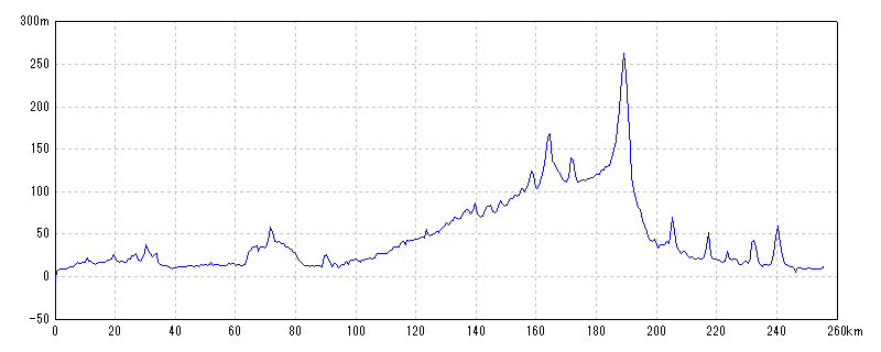 | 水平距離 | 255.48km | 沿面距離 | 255.83km |
