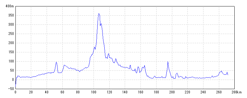 | 地点名 | 通過時刻 移動時間 | 積算距離 区間距離 | 平均速度 | 標高 獲得標高 | 平均勾配 |