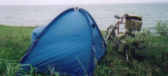 1日目は、館山西崎の海岸に適当に幕営。2日目には九十九里浜白子町の公園のあずまやに泊りました。九十九里道路(有料道路)には、有料道に平行して自転車専用道があり快適に走行できます。予定では3泊4日を考えていましたが、2泊3日で久里浜ー土浦を走破。