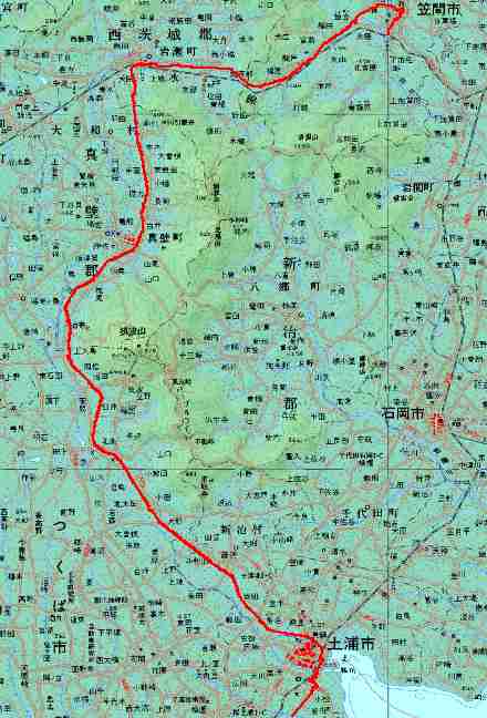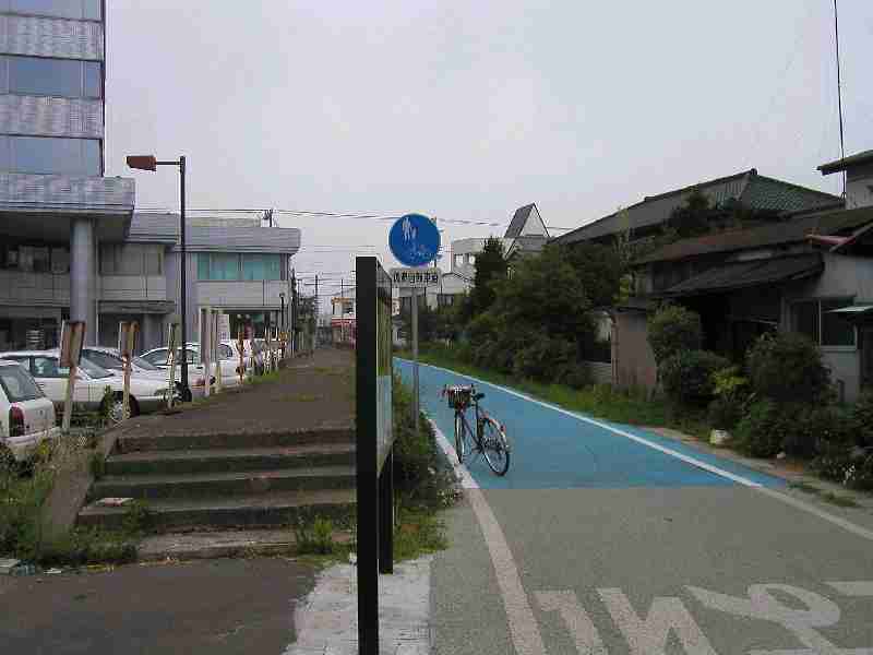 筑波鉄道の軌道後の自転車道が全線開通したとの事で走ってみました(2002年8月) 起点は土浦駅西口、水戸側からです