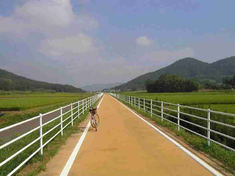 基本的には水田地帯を延々と走ります、普通自転車道は河川堤防等を使用しているので、自転車道としては珍しいのではないでしょうか。
