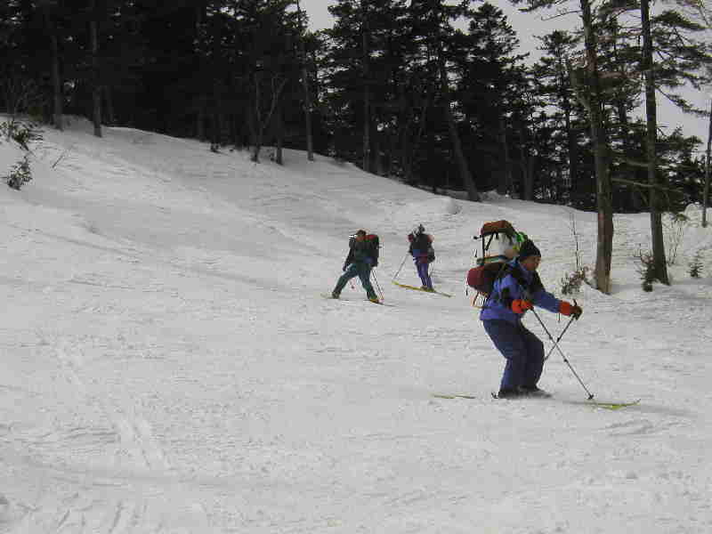 ふらふらしつつ滑り降りる、背負子かついでスキー場を降りるのはかなり珍しいのでは・・