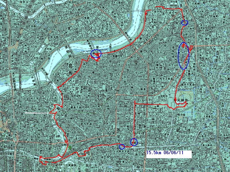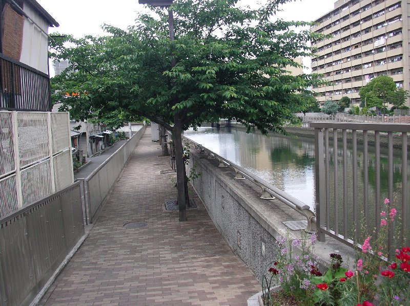 城北川沿いの歩道を走る