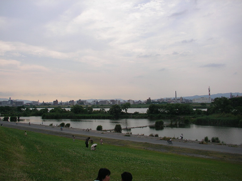 寝屋川 堤防沿いの市民ギャラリーが続く