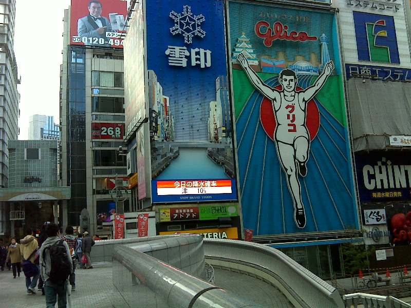 道頓堀 -菅井が経営する「クラブみやこ」とされる 旧)キリンプラザ大阪があった場所、観る者に「ここは大阪だ」と印象づけるのにかかせないグリコの看板。