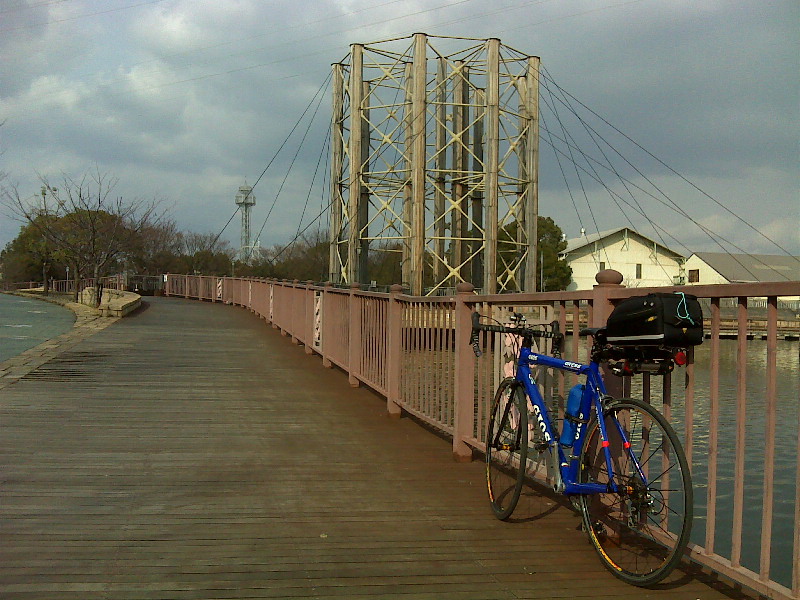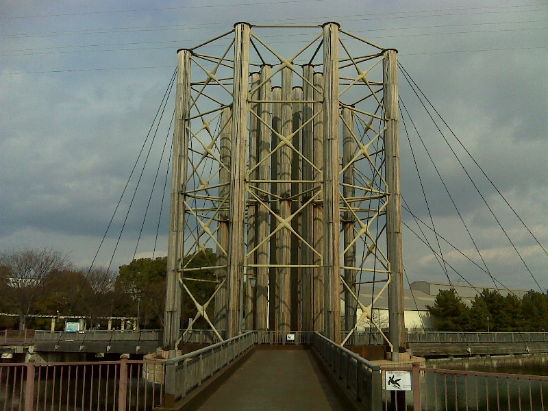 高炉をモチーフにしたモニュメントのあるであい橋、