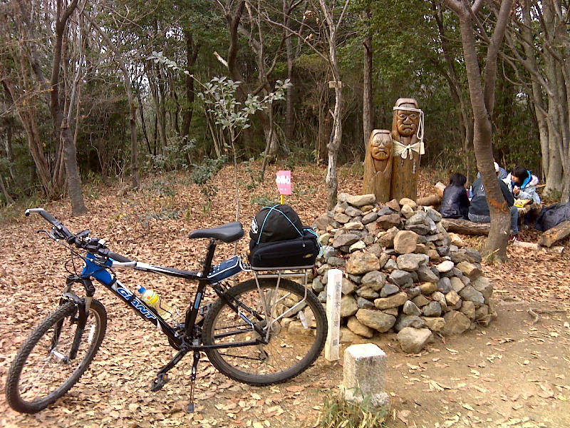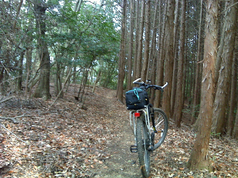 しかたがないので歩道を自転車担いで登り尾根路に出る。