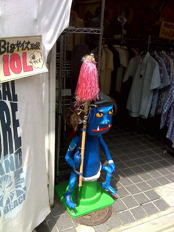商店街のいたるところには手作りの妖怪達が立っている。
