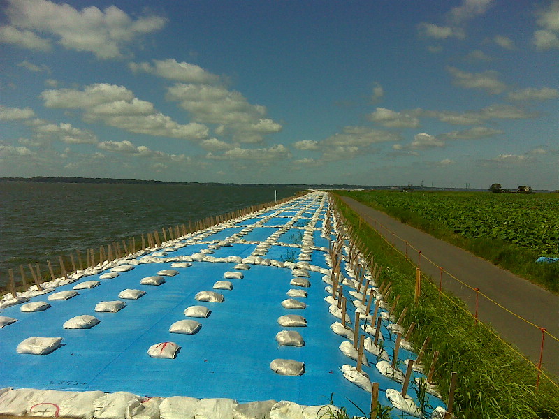![]() まずは霞ヶ浦自転車道、東日本地震による液状化修復はいっこうに進んでない。 |