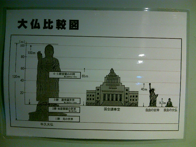 さて牛久の周辺 ・自衛隊の駐屯地(補給所) ・西洋様式の建築物シャトーカミヤ(バーのオーナーが創設) ・つくばの科学者 ・巨大仏像 などのガジェットを組み合わせると おちゃらけライトノベルが出来上がりそうな。 ・・いけ!村の平和を守る、大仏ロボ!