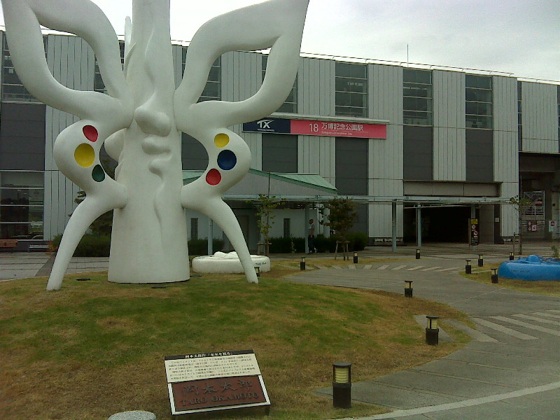 ![]() つくばエキスプレス(TX)線万博公園記念駅前で 鬼才 岡本太郎のモニュメントを確認。 尚、万博記念公園は 科学万博時に公園だった部分(エキスポ・パーク)のみ公園として残し、 展示会場だった土地はすべて工業団地(企業の研究所などに)として利用されていました。 |