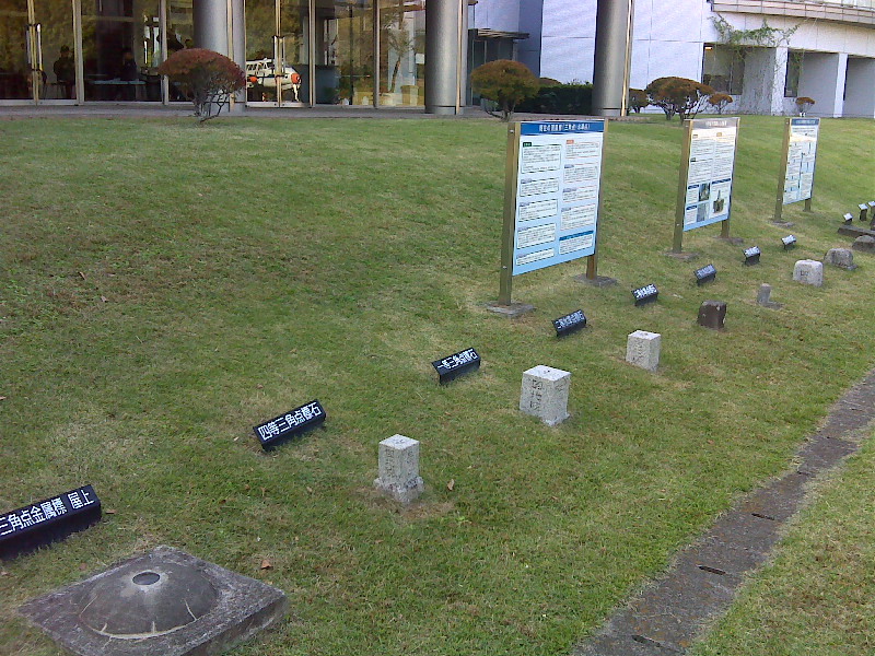 ![]() 「地図と測量の科学館」 入場は無料なのがうれしい。 館内の1階床には日本地図が描かれ、赤・青のメガネを かけると立体に見える。択捉島から沖縄の先まで、 立体視しながら地図上歩くと見ごたえがある。 |
