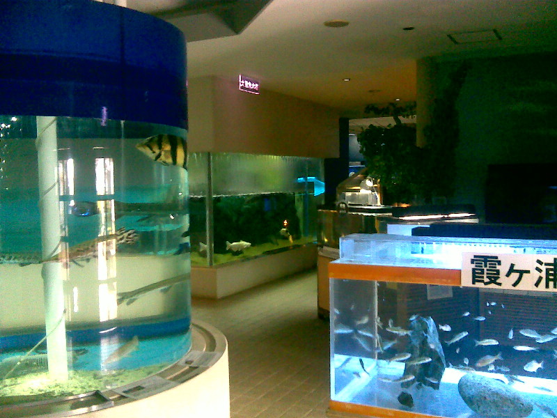 ![]() かすみがうら市水族館は規模が小さい水族館(さながら大きな熱帯魚屋さんの風情)ですが、 淡水魚主体でけっこう堪能できました。 |