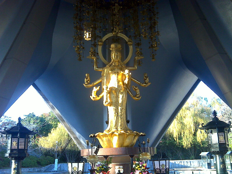 ![]() 境内には、高さ73mを誇る水子供養塔があり、遠くからもその姿を臨むことができる。 |