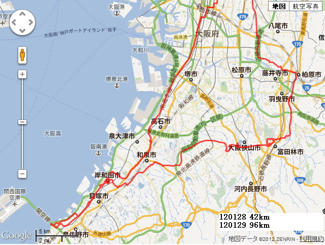 ![]() 後は 南河内サイクルライン(八尾河内長野自転車道) を利用して北上、やはり車や信号、一般歩行者や買い物自転車の圧力がない自転車道は快適です。 |