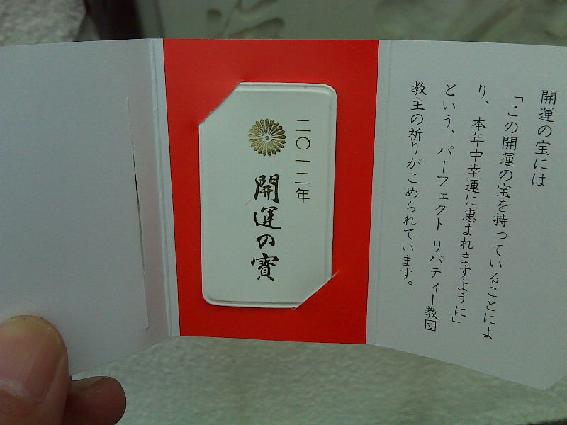 ![]() 「PLタワー=超宗派万国戦争犠牲者慰霊 大平和記念塔」 見学の出口で開運の寶と書かれたお守りを無料で戴きました! いい記念になるのでひとつもらっておきました。 (ありがたや§^。^§) |