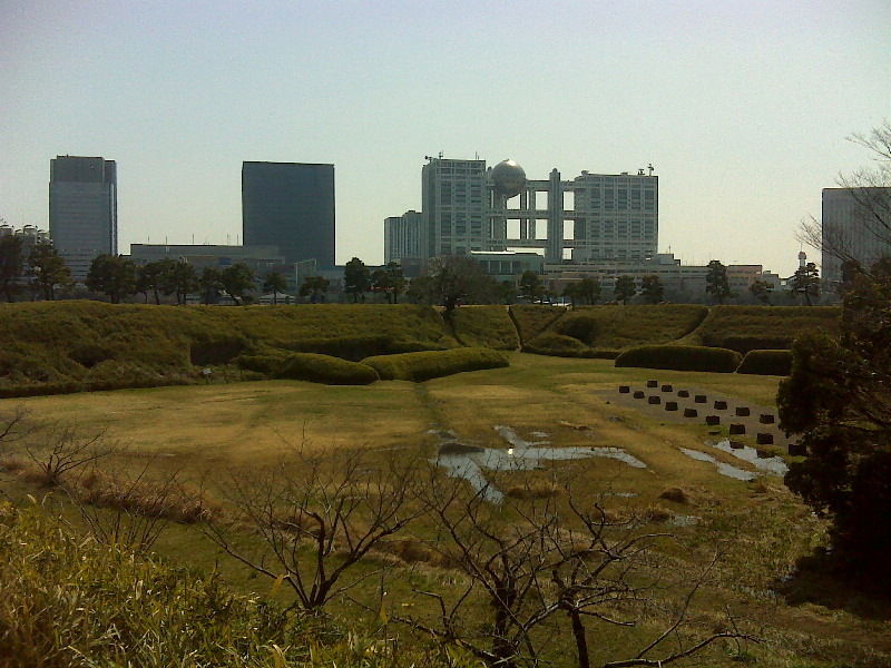 ![]() 有楽町の無印良品(LOFT)にてレンタサイクルを借りる。 レンタルにあたって電動アシストサイクルを借りてみる 漕ぎ出しや登坂時に後ろから押されている様な動作は 楽だ! 「台場公園(第三台場)」は江戸幕府が黒船来襲にそなえて築いた砲台跡だそうで、 高さ5〜7メートルの地には大きな窪みがあり陣屋・弾薬庫跡等が残っている。 さて、「お台場海浜公園」から球体展望室が目立つ「フジテレビ」が見えます。 |