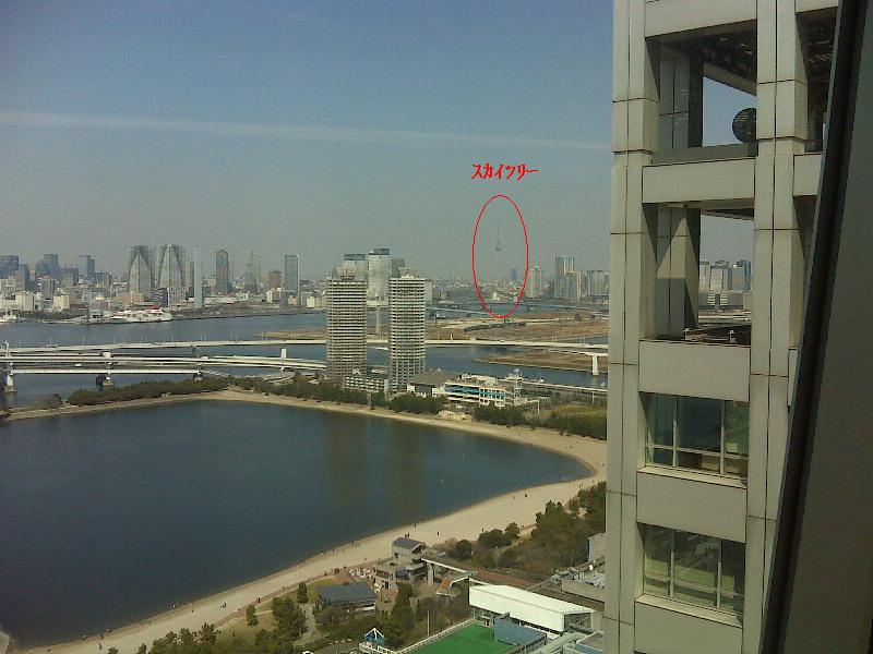 ![]() 「フジテレビ」球体展望室は有料で観覧できます(高校生以上500円、小中学生300円) 展望室から スカイツリーが見える。 |
