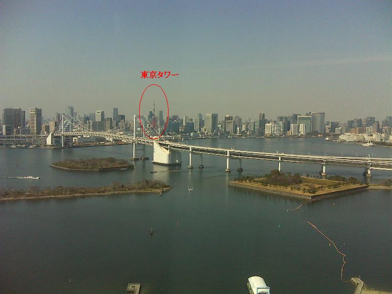 ![]() 展望室から 東京タワー&ベイブリッチが見える。 |