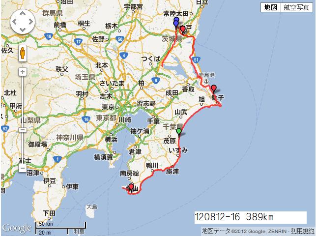 土浦→水戸→大洗→銚子→房総半島金谷(東京湾フェリー)→久里浜→横浜の計画で自転車ラン予定