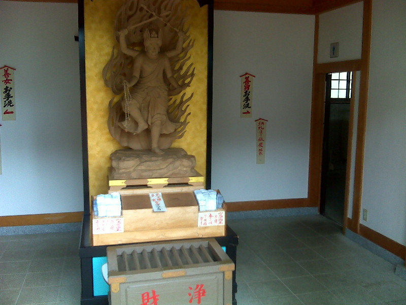 ![]() 満願寺のトイレ施設、烏枢沙摩明王堂<うすさまみょうおうどう>でお経を聞きながらうんを流し(もとい不浄を清めて)きました。 |