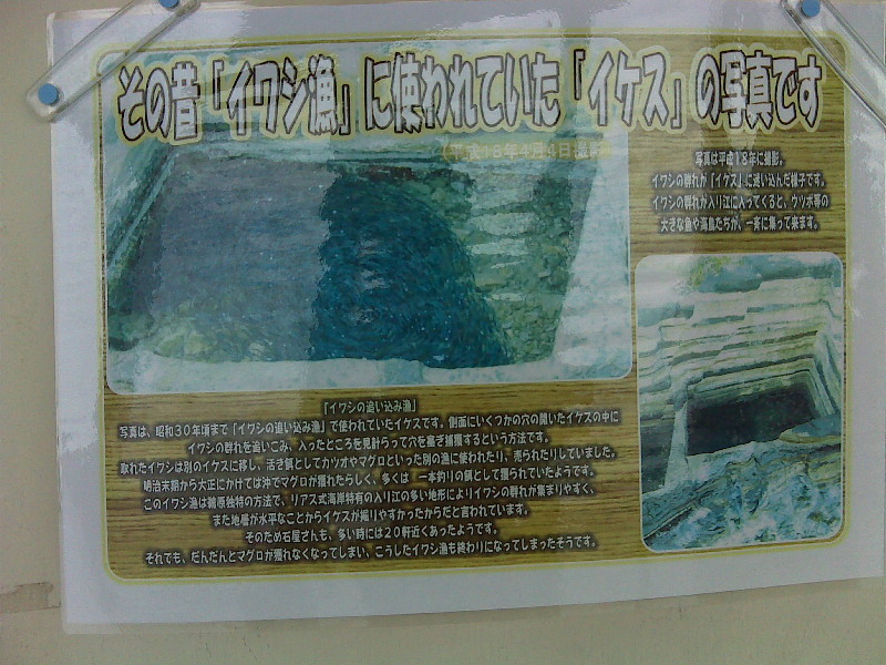 ![]() 海中公園への桟橋途中には昔イワシ漁に使われたイケスがある。 |