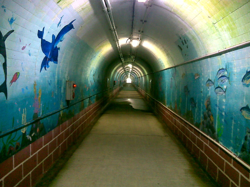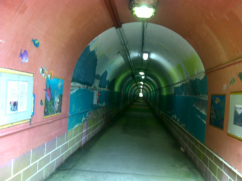 ![]() トンネル水族館。 鴨川の天津地区と小湊地区の境に位置する実入トンネルの233.5mの歩道用トンネル内を 海中に見立て、色とりどりの魚たちが回遊する絵が描かれている ネット上でくわしい解説があったが、この様な地味で 知られていないプロジェクトは割と好きなパターンだ。 |