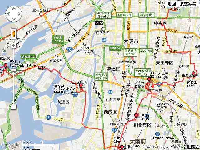 大阪アルプス全山制覇! 『御勝山』(標高14m) 『茶臼山』(標高26m) 『聖天山』(標高14m) 『帝塚山』(標高20m) 『昭和山』(標高33m) 『天保山』(標高4.5m)