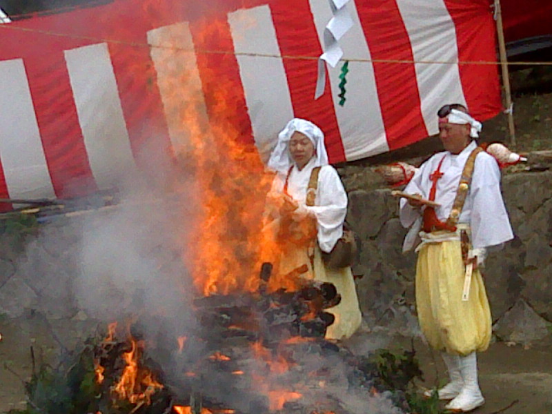 ![]() 峠前11時過ぎ暗峠観音寺による護摩供「火渡り」の場面にちょうど出くわしたので開始から終了まで見学。 |