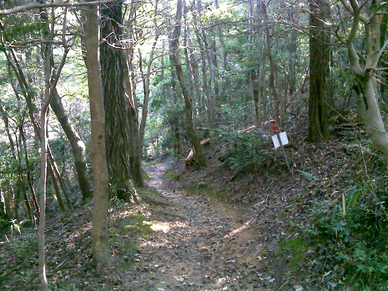 ![]() 登りは舗装路、新大阪CCまで。先に進むとゴルフ場の端で分岐となっています、若山神社方面は勾配がきつそうなので避けて、 金竜寺跡方面へ。 |