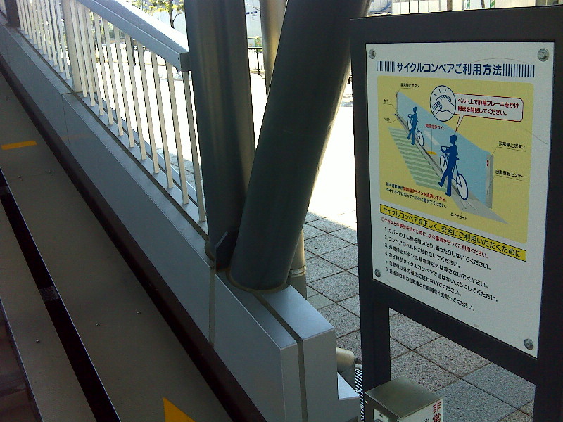 ![]() 高槻駅の歩道で・・・電動の自転車昇降機(サイクルコンベア)めずらしい施設です。 |